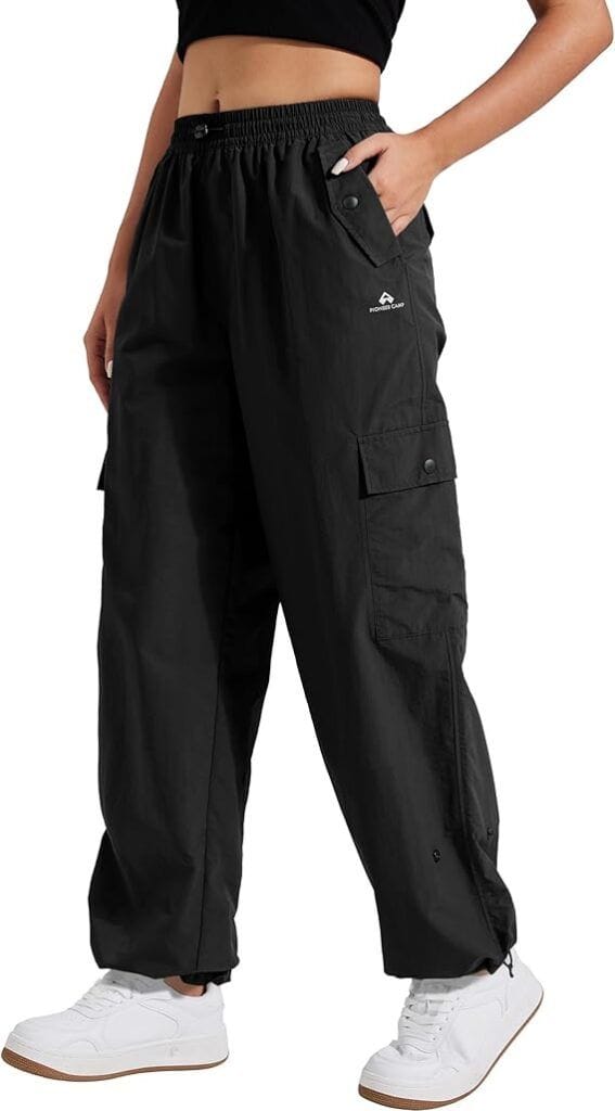 El athleisure evoluciona hacia tejidos técnicos de alta calidad. Un pantalón tipo parachute en tejido técnico repelente al agua combinado con un body ajustado.